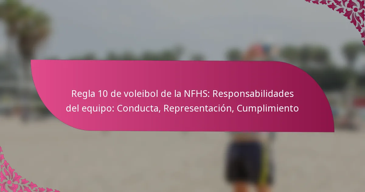 La Regla 10 de la NFHS describe las responsabilidades de los equipos de voleibol en relación con la conducta, la representación y el cumplimiento. Los equipos deben adherirse a estándares específicos para garantizar el juego limpio y el espíritu deportivo a lo largo de la temporada.