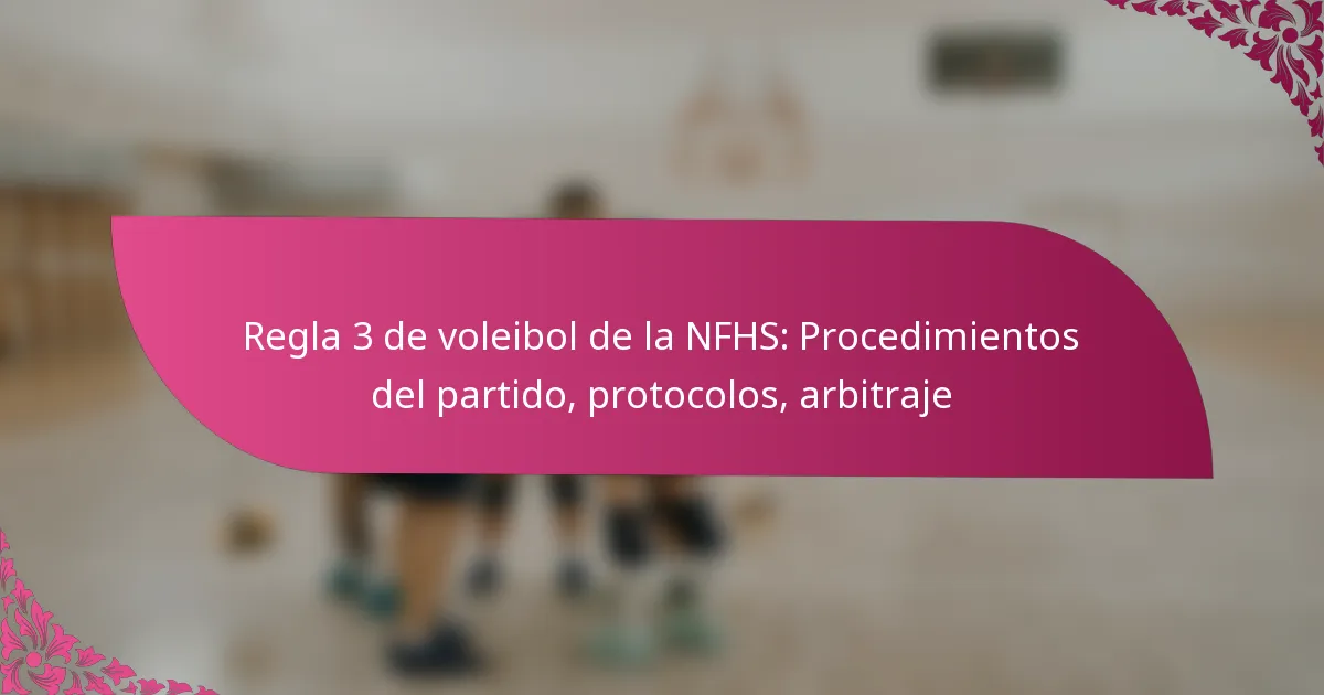 La Regla 3 de Voleibol de la NFHS describe los procedimientos esenciales del partido, las responsabilidades de los árbitros y los protocolos que rigen el desarrollo de un partido de voleibol. Comprender estos componentes asegura un juego fluido y la adherencia a las regulaciones.
